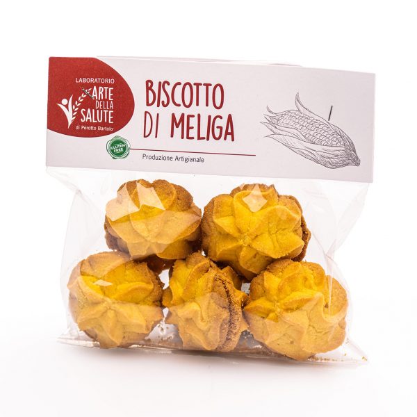 Friabile biscotto di meliga realizzato con una miscela di farine senza glutine, contenente solo fibre vegetali perfetto per celiaci, intolleranti al glutine ed intolleranti al latte e ai suoi derivati. Prodotto Artigianale.